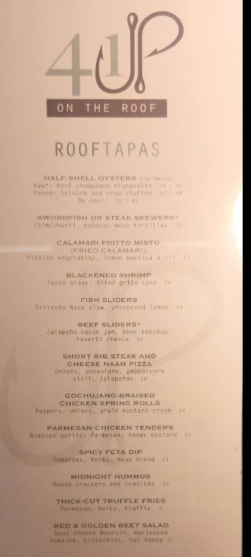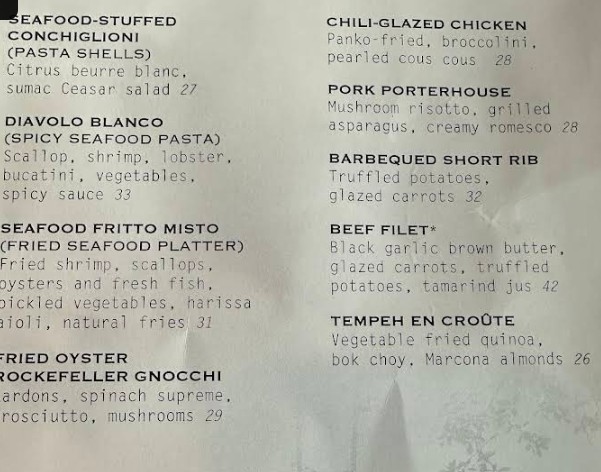 We had never tried this restaurant and were surprised with the food. We started off with a couple of drinks and the shrimp appetizer which was very fresh and had a delicious sauce. My husband got the salmon dish, and said he liked the flavor but wished there was more substance to the dish and was still hungry when done. I however was very full after my dish of oyster rockafeller gnocchi, which had a delectable sauce. We finished our dinner with the key lime cheesecake, which was very cute and tasty. Our service was amazing and the view was very pretty.